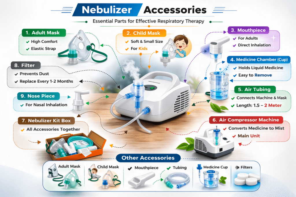 Respiratory illnesses such as asthma, bronchitis, COPD, and severe cough are becoming increasingly common in India. With rising air pollution levels and seasonal infections, many doctors recommend keeping a nebulizer at home for quick respiratory relief.