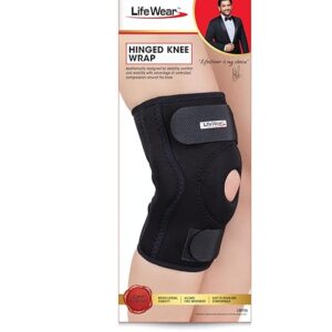 LifeWear Hinged Knee Wrap, Adjustable Support Brace with Bi-Axle Hinges for Stability, Open Patella Design, Drytex Fabric for Comfort, For Mild to Moderate Knee Instability and Post-Operative Recovery