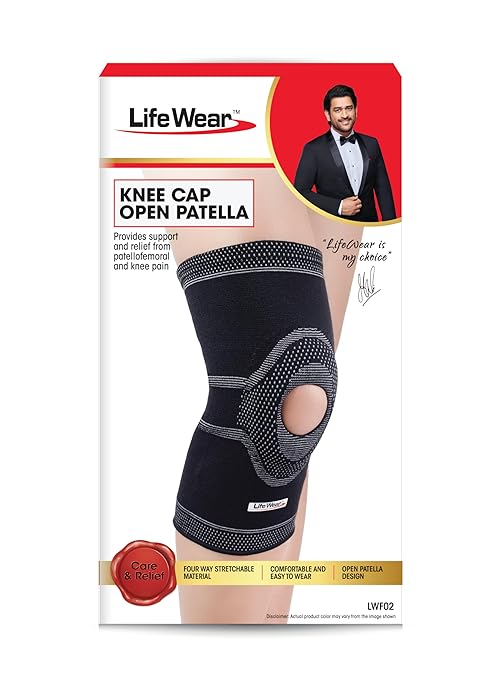 Life Wear Knee Cap Open Patella, Adjustable Knee Support Brace, Anatomical Design for Stability, Non-Constricting Edges and Open Patella for Pain Relief and Free Movement