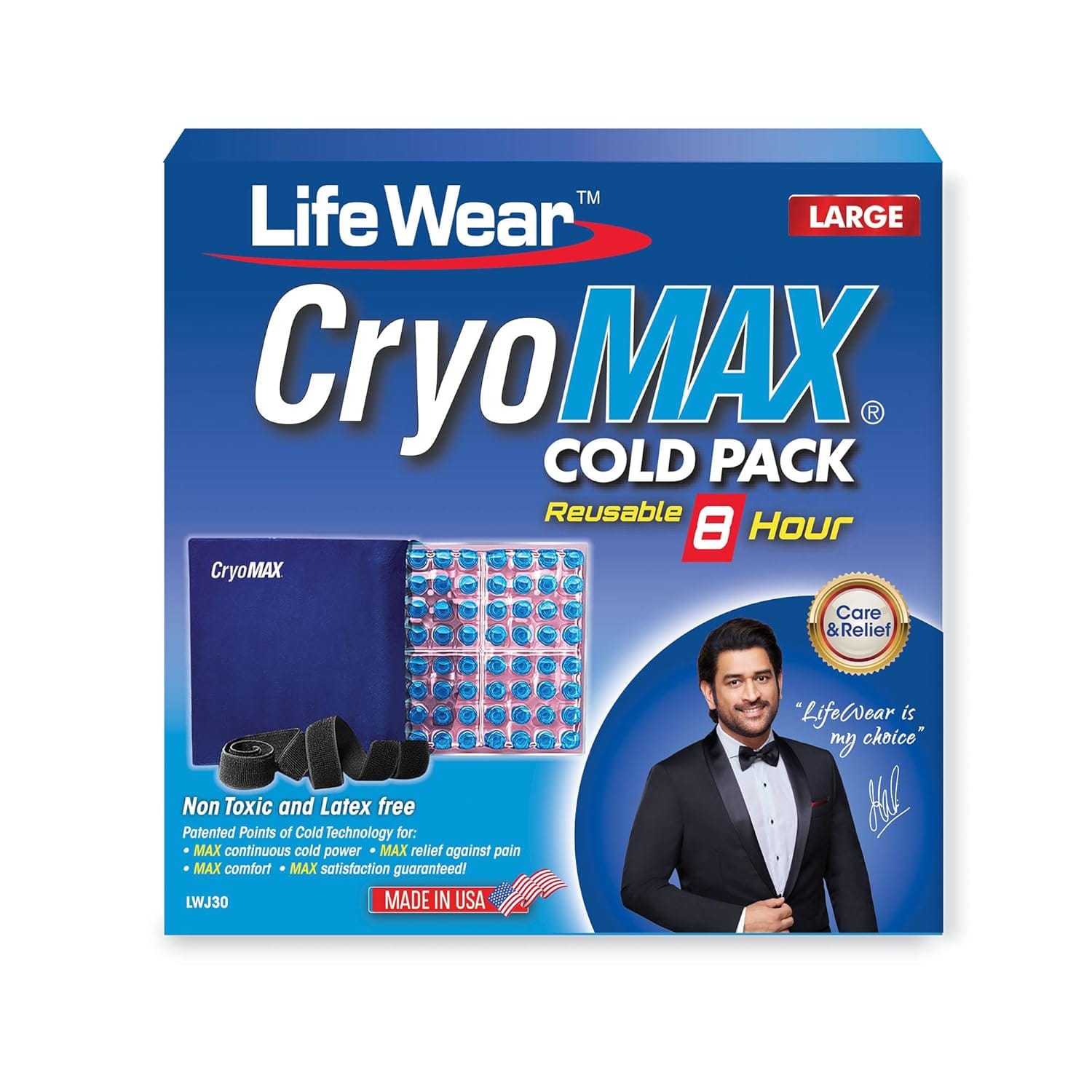 LifeWear CryoMAX Cold Pack for Pain Relief, 8-Hour Reusable Pack, Patented Points of Cold Technology, Effective Cooling Therapy for Pain Relief, Aches and Discomfort, Frozen-Filled Water Capsules (Large)