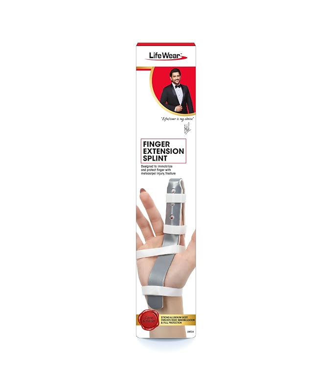 LifeWear Finger Extension Splint, For Fracture, Soft Tissue and Ligament Injuries, Immobilizes Finger and Metacarpal Joint, Pain Relief, Lightweight, Breathable and Comfortable, Unisex,